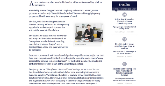 Prime Resi talks about Cuvelo - "Design duo launch new estate agency selling 'beautiful, refurbished homes with warranty'